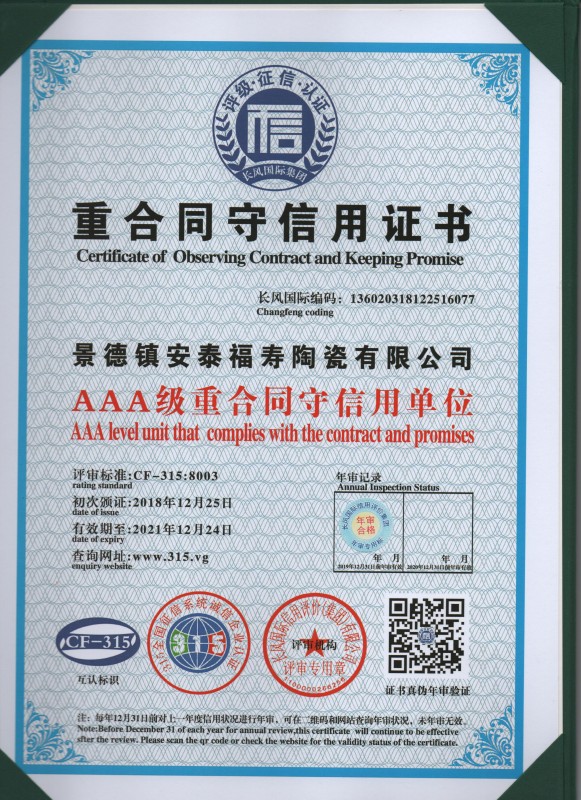重合同守信用證書(shū)