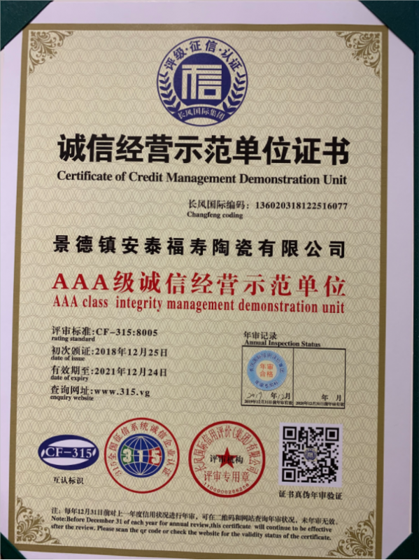 誠信經(jīng)營(yíng)示范單位