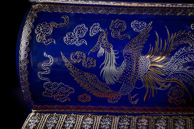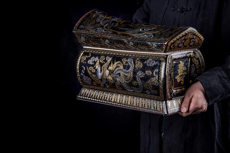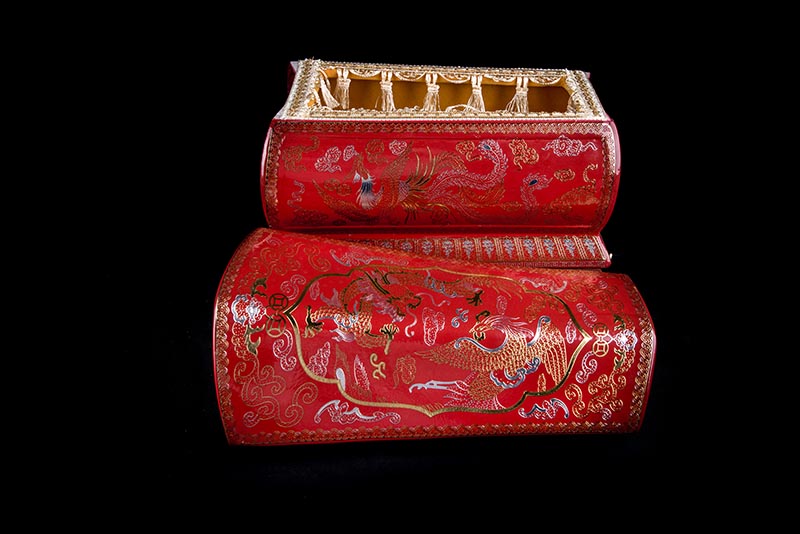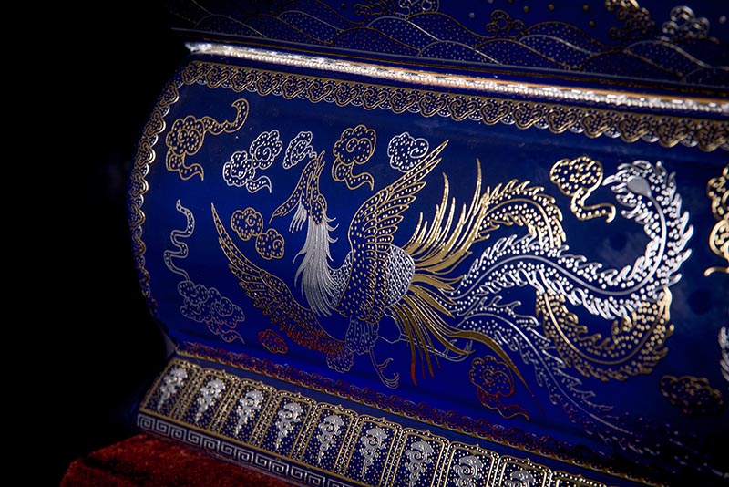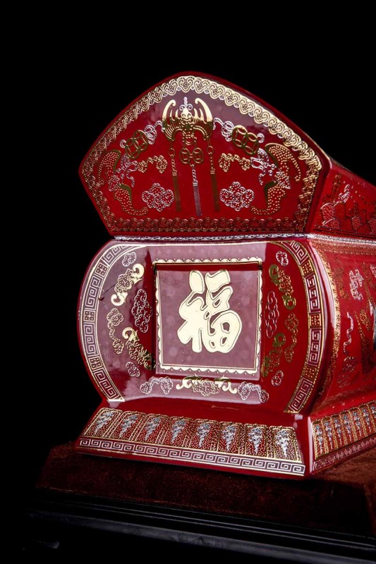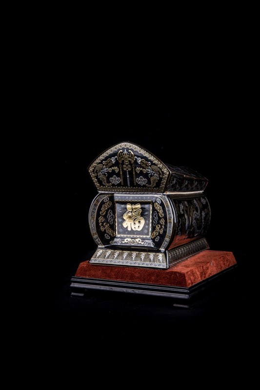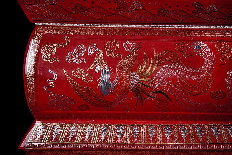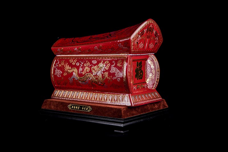 這款【金銀龍鳳】系列產(chǎn)品器型是傳統的長(cháng)棺造型,古人常說(shuō):見(jiàn)棺者,升官發(fā)財,可見(jiàn)它的美好寓意。我們可以看到這款產(chǎn)品,一面龍,一面鳳,素有“龍鳳呈祥”一說(shuō),采用的是“錯金銀”工藝,它是中國非物質(zhì)文化遺產(chǎn)名錄的一項美麗的藝術(shù),源自于“春秋戰國時(shí)期”至今已經(jīng)2000多年,把這種精湛工藝運用到我們永生盒,既是傳承,亦是發(fā)揚!尺寸:400x220x290mm