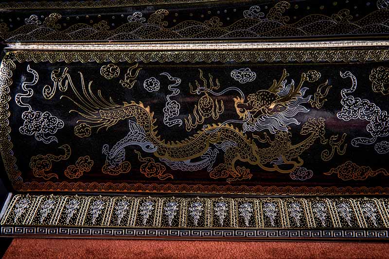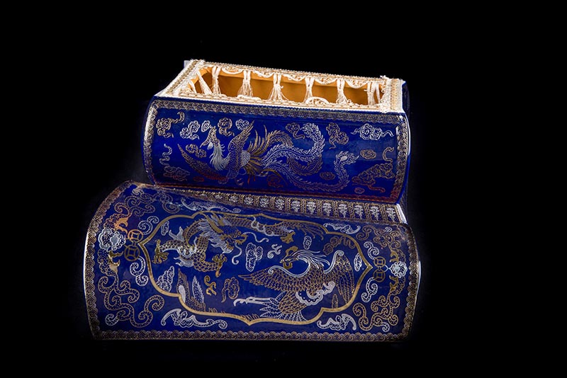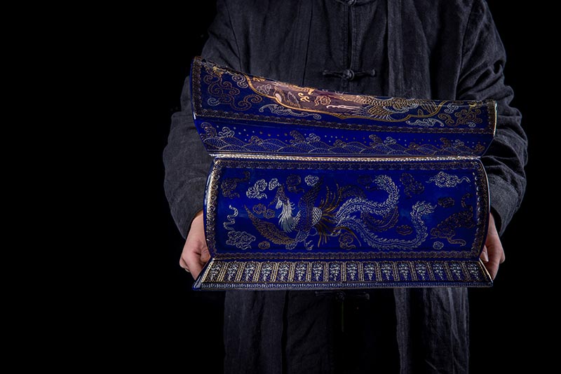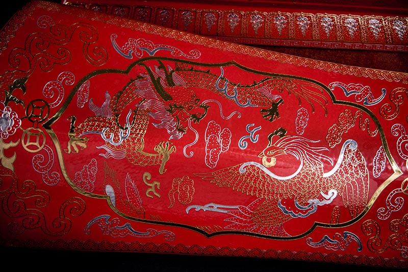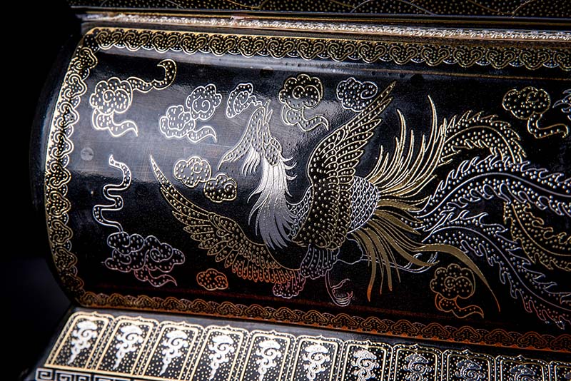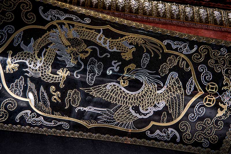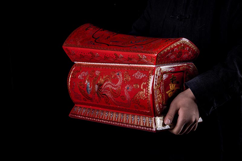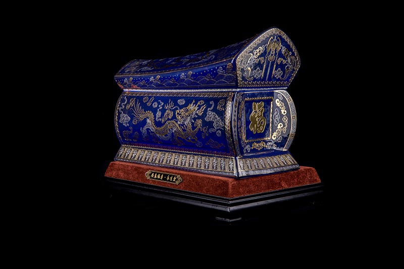 這款【金銀龍鳳】系列產(chǎn)品器型是傳統的長(cháng)棺造型,古人常說(shuō):見(jiàn)棺者,升官發(fā)財,可見(jiàn)它的美好寓意。我們可以看到這款產(chǎn)品,一面龍,一面鳳,素有“龍鳳呈祥”一說(shuō),采用的是“錯金銀”工藝,它是中國非物質(zhì)文化遺產(chǎn)名錄的一項美麗的藝術(shù),源自于“春秋戰國時(shí)期”至今已經(jīng)2000多年,把這種精湛工藝運用到我們永生盒,既是傳承,亦是發(fā)揚!尺寸:400x220x290mm