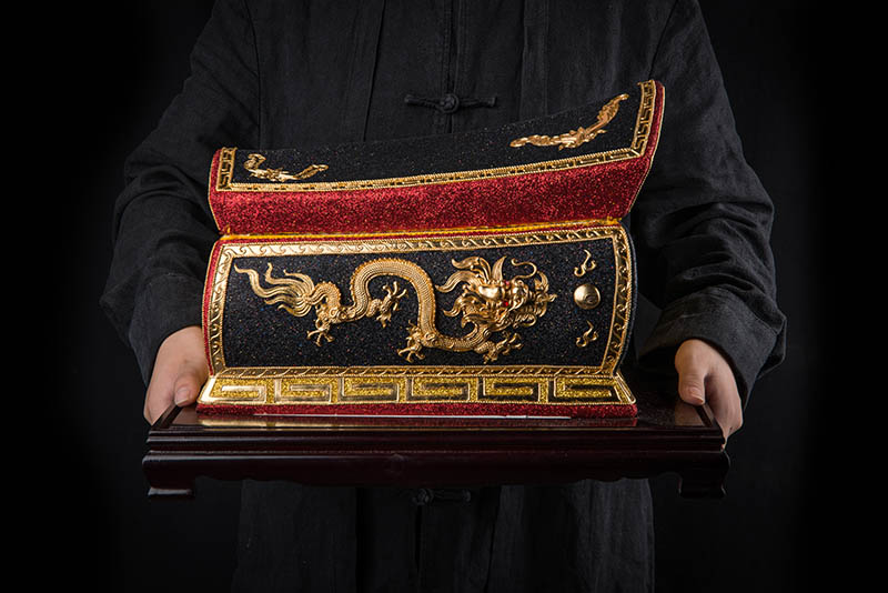 24K金線(xiàn)雕鳳龍長(cháng)棺