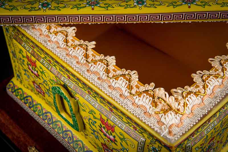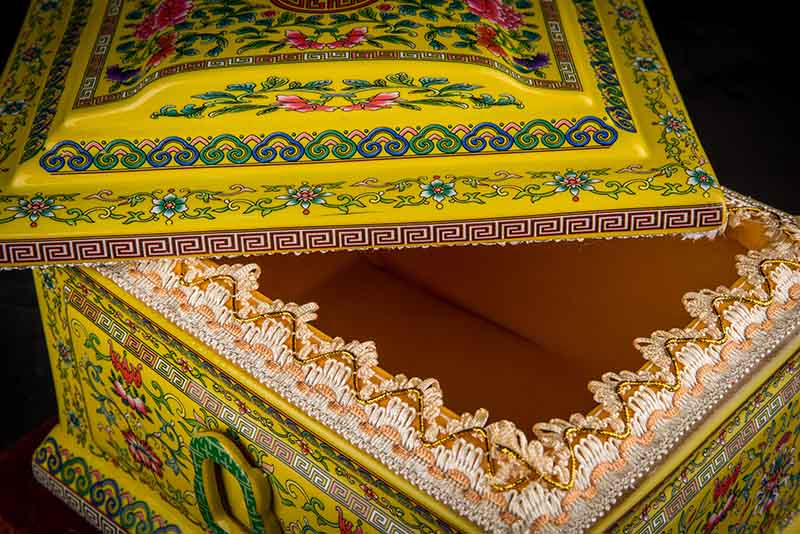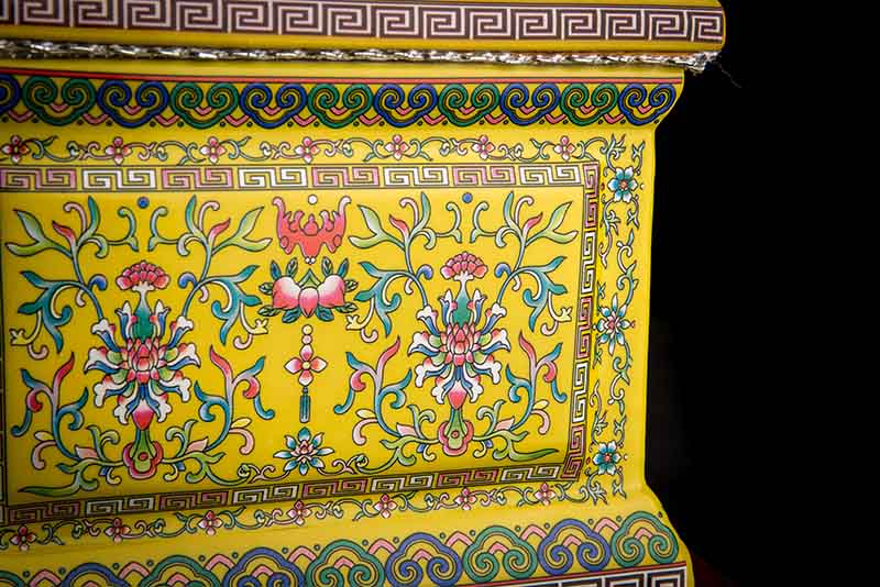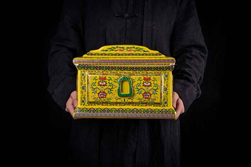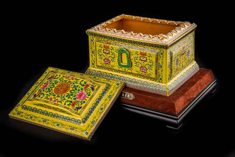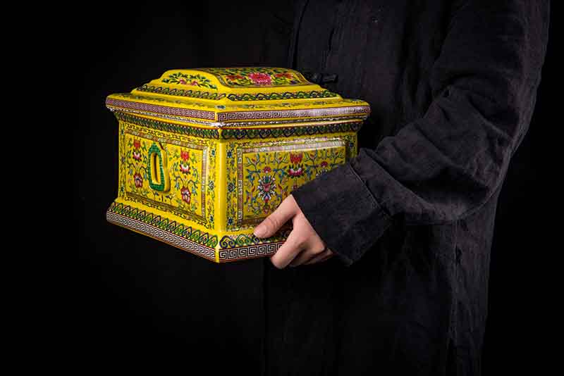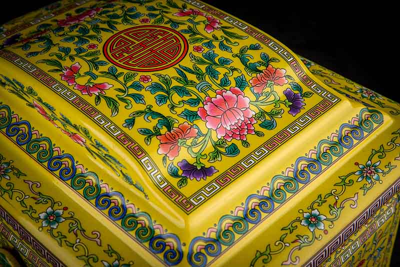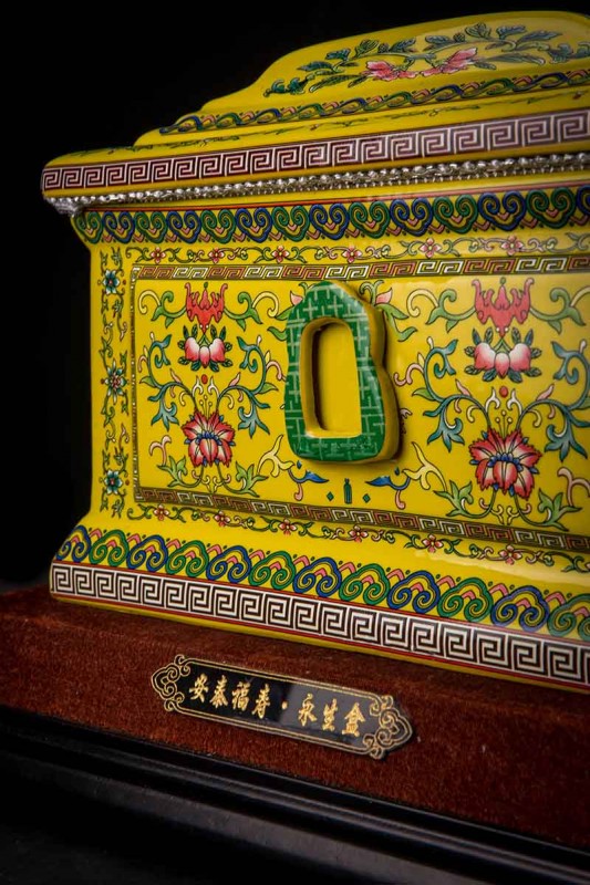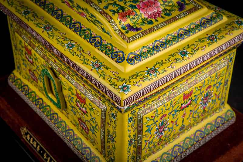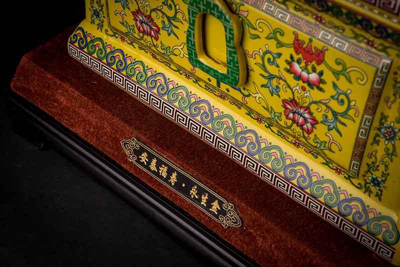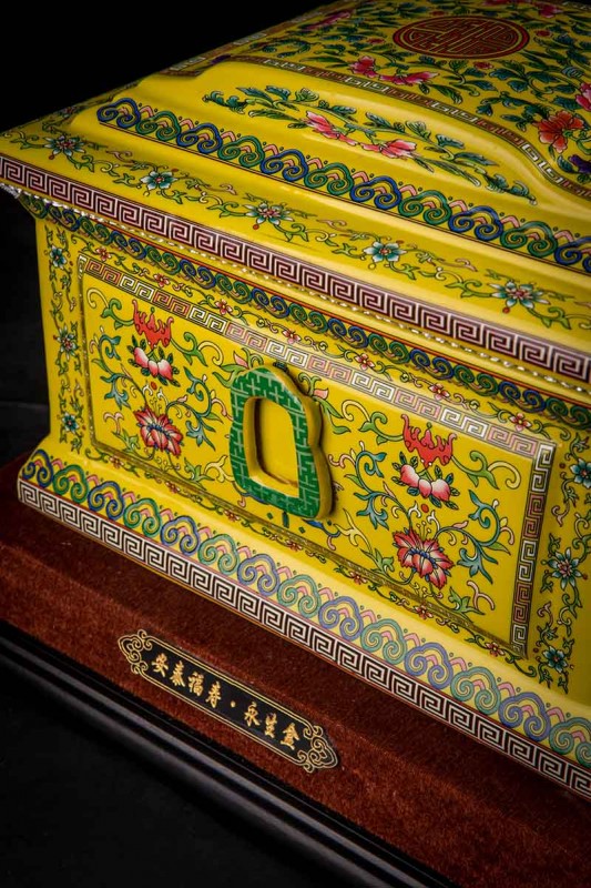這款【吉祥如意】系列產(chǎn)品,目前有幾種顏色釉系列,黃、藍、紅、以及黑。這款產(chǎn)品運用中國古代傳統的吉祥紋飾—“纏枝蓮”?!袄p枝蓮”常運用在陶瓷作為點(diǎn)綴,因其結構連綿不斷,故又具“生生不息”之意,同樣保后代代代繁榮。尺寸:300x230x210mm